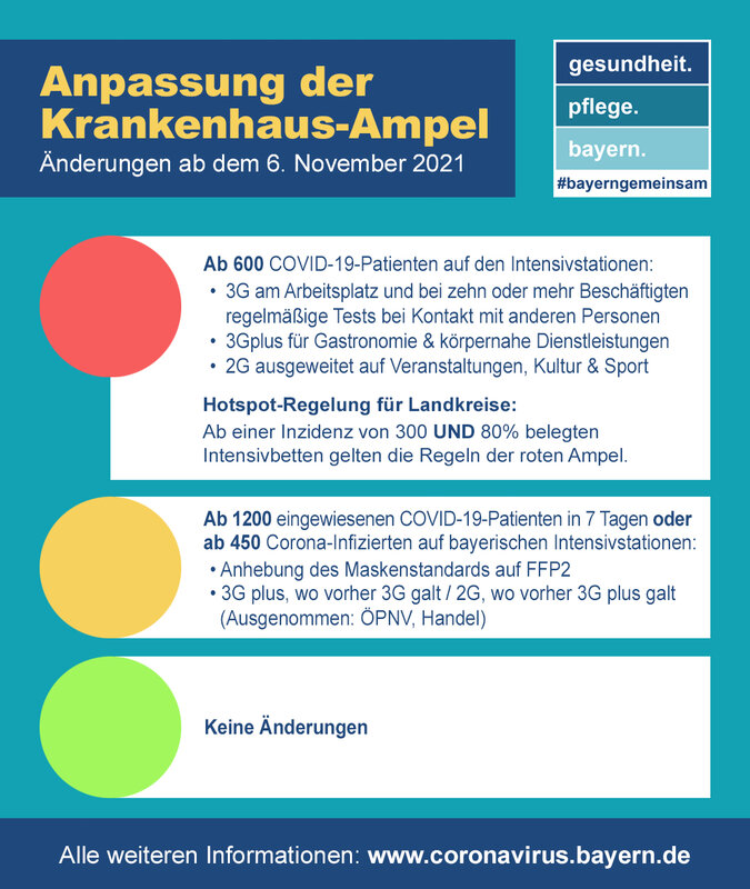 November neue Maßnahmen gelten. Die Krankenhaus-Ampel mit den Stufen Gelb und Rot hat ab Samstag 6. Im Kampf gegen Covid-19 gelten in Bayern ab sofort noch strengere Corona-Maßnahmen.